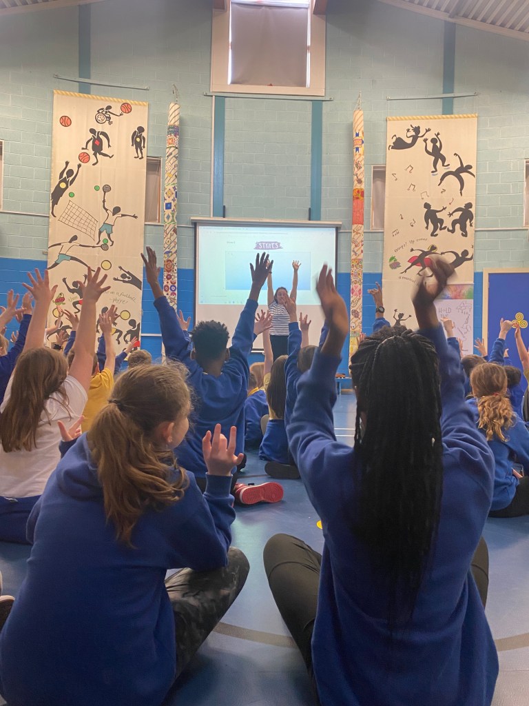 In November 2023, members of Hold the Drama visited Ibstock Place school for a full day of workshops across key stage 2. The day started with a viewing of Digital Stripes, discussing the characters feelings, thoughts and emotions. Then, in the workshops, each class explored how to express emotions through music and drama, creating their own scenes and tableaus, directing performers actions and even writing their own raps about kindness and tolerance.